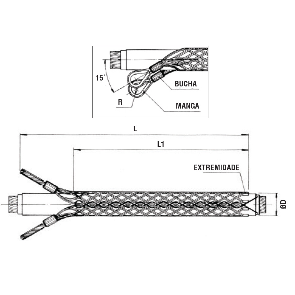 Camisa offshore (diâm. do cabo 55-60 mm; carga de trabalho 2,0 kgf)
